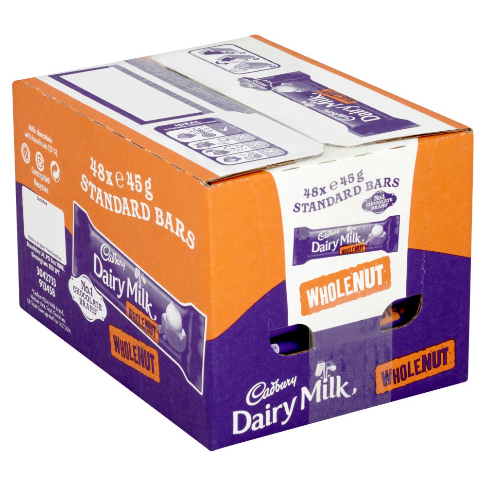 Cadbury Dairy Milk Wholenut Chocolate Bar 45g x 48