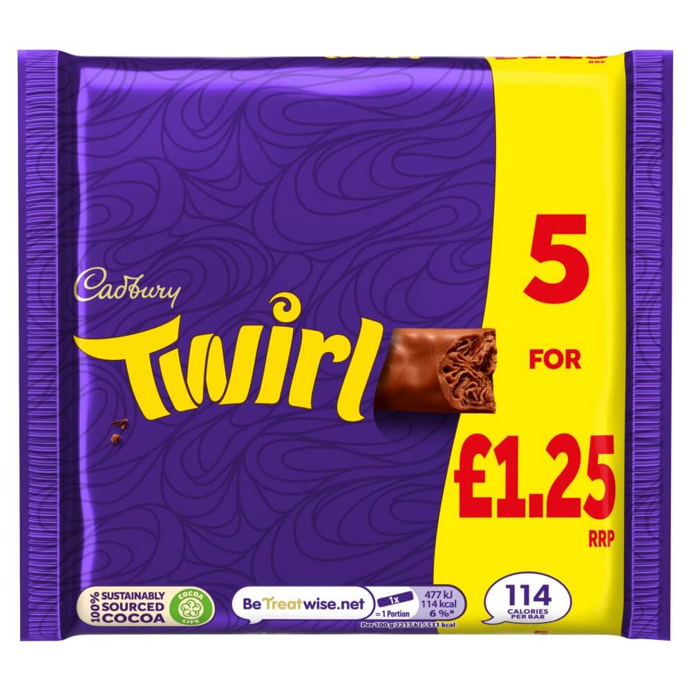 Cadbury Twirl Chocolate Bar 5 Pack Multipack ?1.25 PMP 107.5g x 20