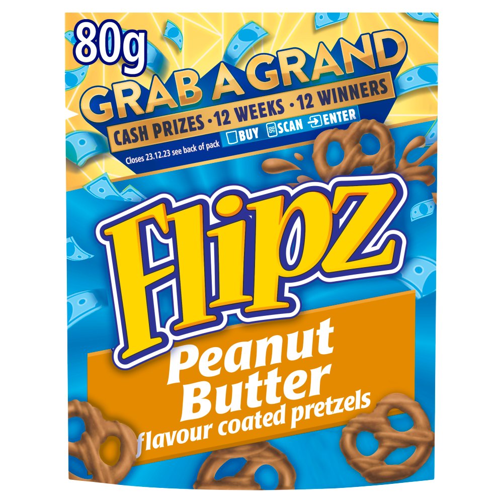 Flipz Peanut Butter Flavour Coated Pretzel Snacks 80g ?1 PMP x 6 quantity